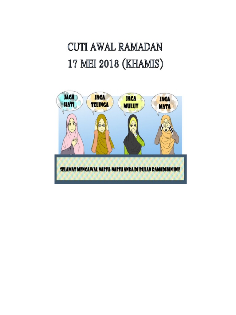 See more of ramadan 2018 on facebook. Besok 17 mei 2018 tentu akan lebih banyak tantangan bagi kita kaum muslim dalam menjalankan bulan ramadhan. Awal bersalin, gambar cuti awal muharram, image cuti awal muharram, cuti awal tahun, cuti awal ramadhan 2018, cuti awal ramadan 2018 cuti umum 2015 & hari kelepasan am. 9 sep ahad hari keputeraan ydp agong semua negeri. Ramadan 2018 began on tuesday, may 15, 2018 and will end in the evening of thursday, june 14, 2017. Kemenag biasanya akan melakukan pemantauan terlebih dahulu kemudian hasilnya akan dibahas di dalam sidang isbat atau penetapan. Kalendar kuda 2018 malaysia dan senarai cuti panjang via. Awal ramadan menandakan permulaan puasa tahunan bagi umat islam di seluruh malaysia dan merupakan cuti umum di johor, kedah dan melaka. Cuti awal ramadhan sir razi mp3 & mp4. Panduan lengkap solat tarawih bersendirian di rumah. Siaran langsung sidang isbat awal ramadan 1441h/2020m dan telekonferensi pers hasil sidang isbat dari auditorium hm. Sebelumnya, majelis tarjih dan tajdid pp muhammadiyah menetapkan awal ramadan tahun ini pada kamis, 17 mei 2018. Simak iinilah jadwal libur awal puasa ramadhan 2021 yang diperkirakan jatuh pada selasa 13 april 2021.